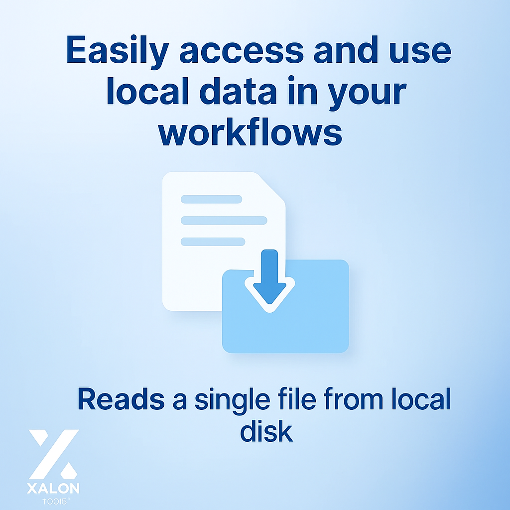 This automation reads a single file from your disk and makes its contents available for processing, transformation, or uploading — perfect for working with saved logs, documents, or local exports.