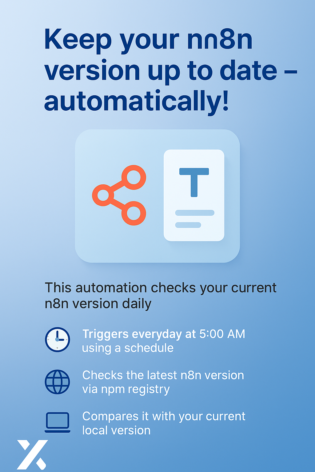 This automation checks your current n8n version daily, compares it with the latest available one, and writes a simple update flag to your server. It’s perfect for keeping Docker-based n8n deployments current without constant manual checks.