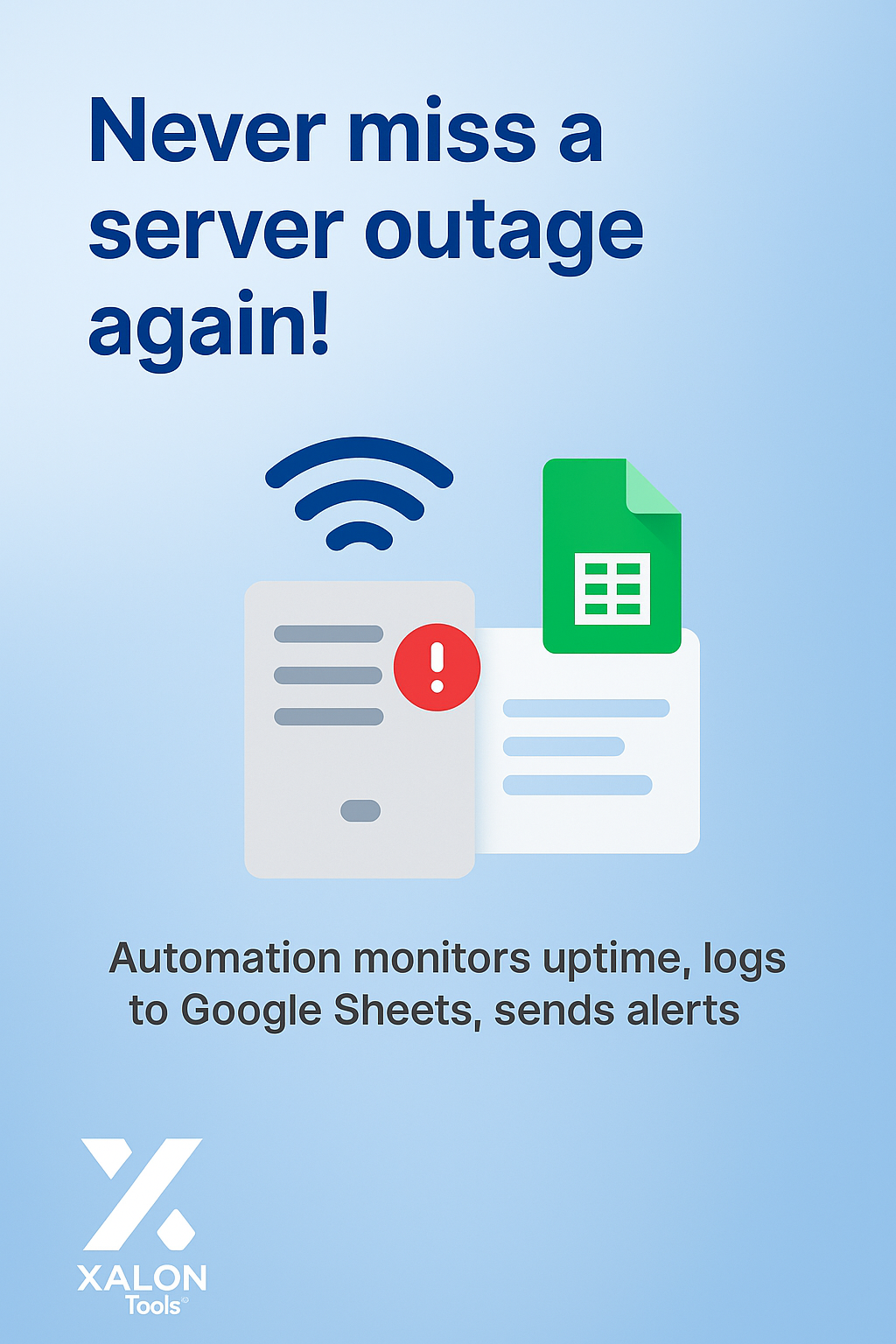 This automation continuously monitors your server uptime and logs the results into Google Sheets. If downtime is detected, it instantly sends an email alert—so you can act fast before users even notice.