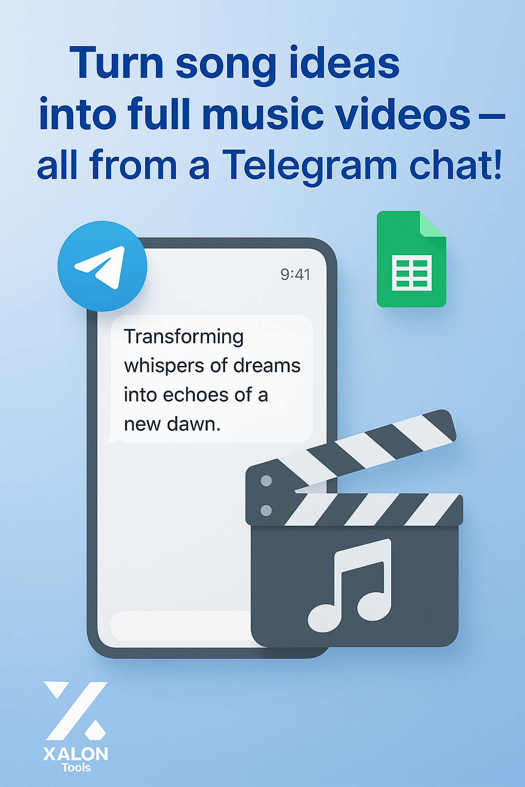 This automation lets users submit song ideas via Telegram, then uses AI to generate lyrics, music, visuals, and looping videos — merging it all into a polished clip that’s delivered right back to the user. All interactions, files, and outputs are logged and managed seamlessly in Google Sheets and Drive.