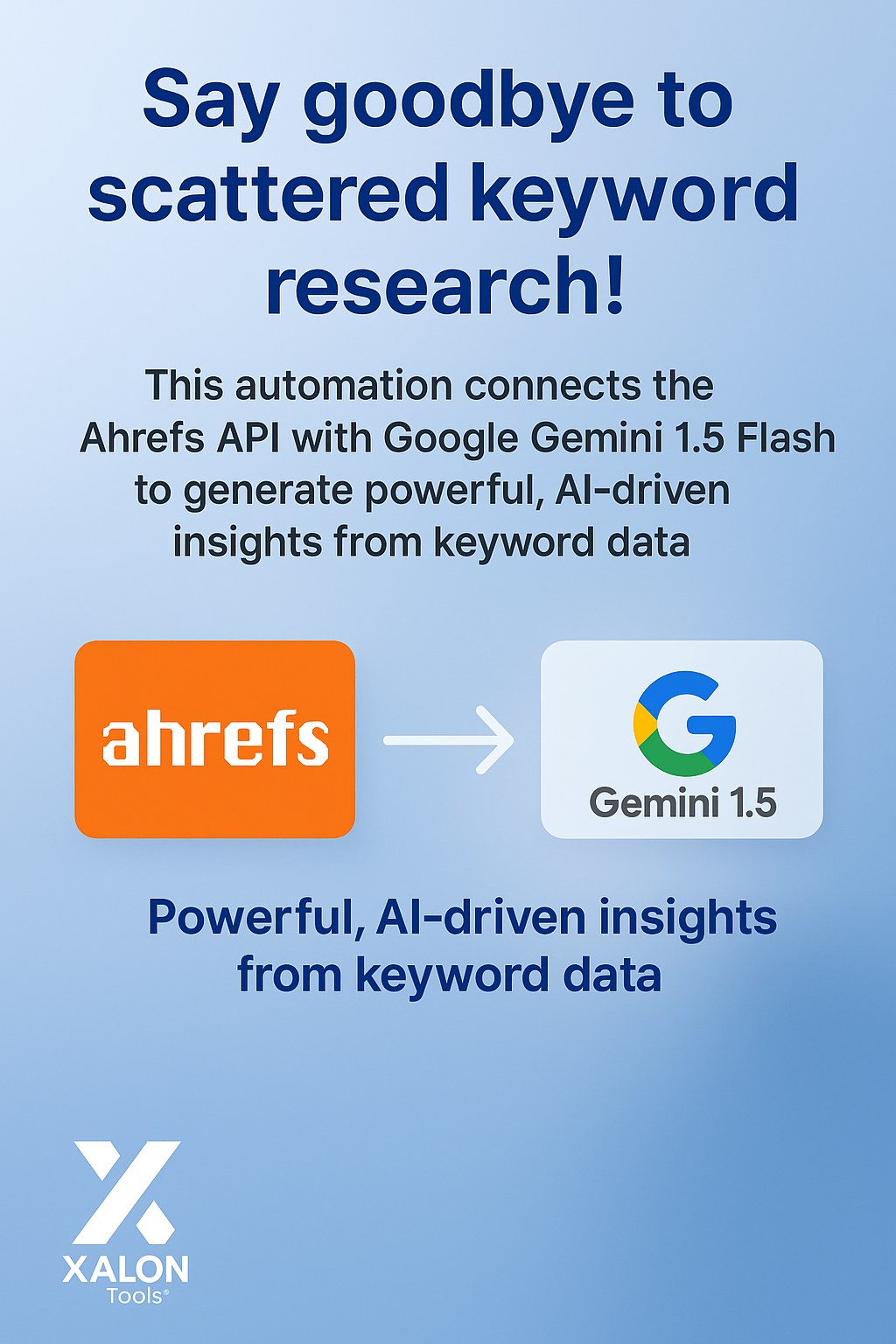 This automation connects the Ahrefs API with Google Gemini 1.5 Flash to generate powerful, AI-driven insights from keyword data — giving you actionable SEO strategies in minutes, not hours.